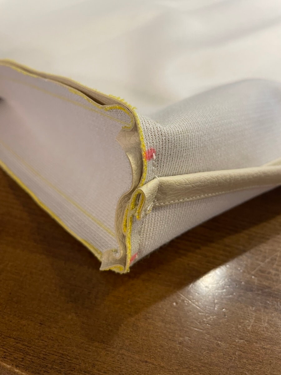 難しかった角の部分はこんな感じ。多少縫合が雑になっても、表面の見栄えは大きく左右されません。