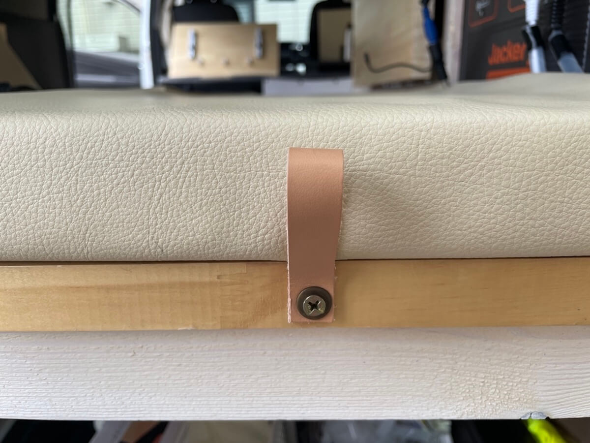前提として、天板下が収納になっているため、マットを敷いたまま開閉できるのがベスト。天板が区画で分かれているので、マットも同様に分割して作成します。